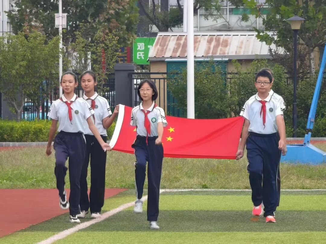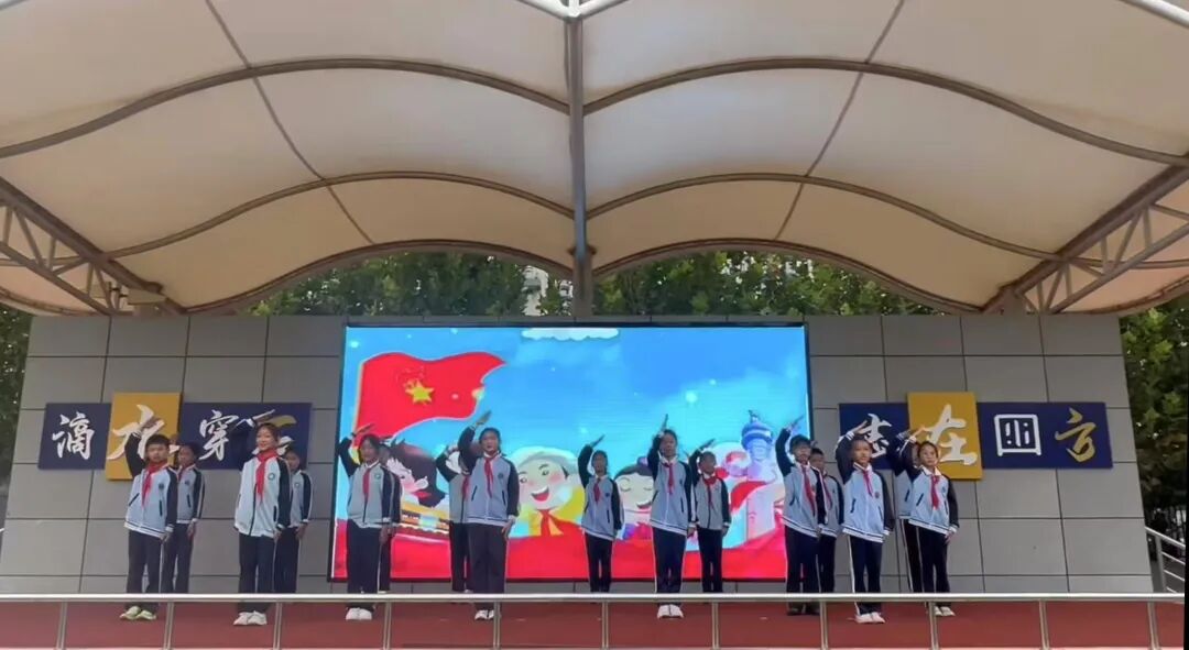 当雄壮的《义勇军进行曲》响起,五星红旗缓缓升起,全体师生肃立注目,少先队员行队礼,齐声高唱国歌。仰望国旗,心怀感恩与使命,让爱国情怀与文明意识在这一刻深深扎根。